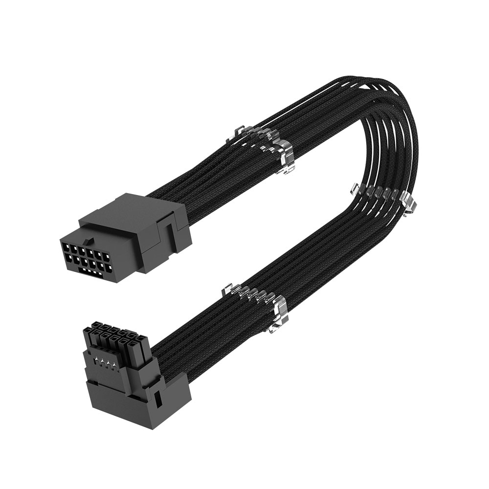 An angled connection eliminates the necessity for wire bending, preventing additional stress on both the cable and the graphics card connector.