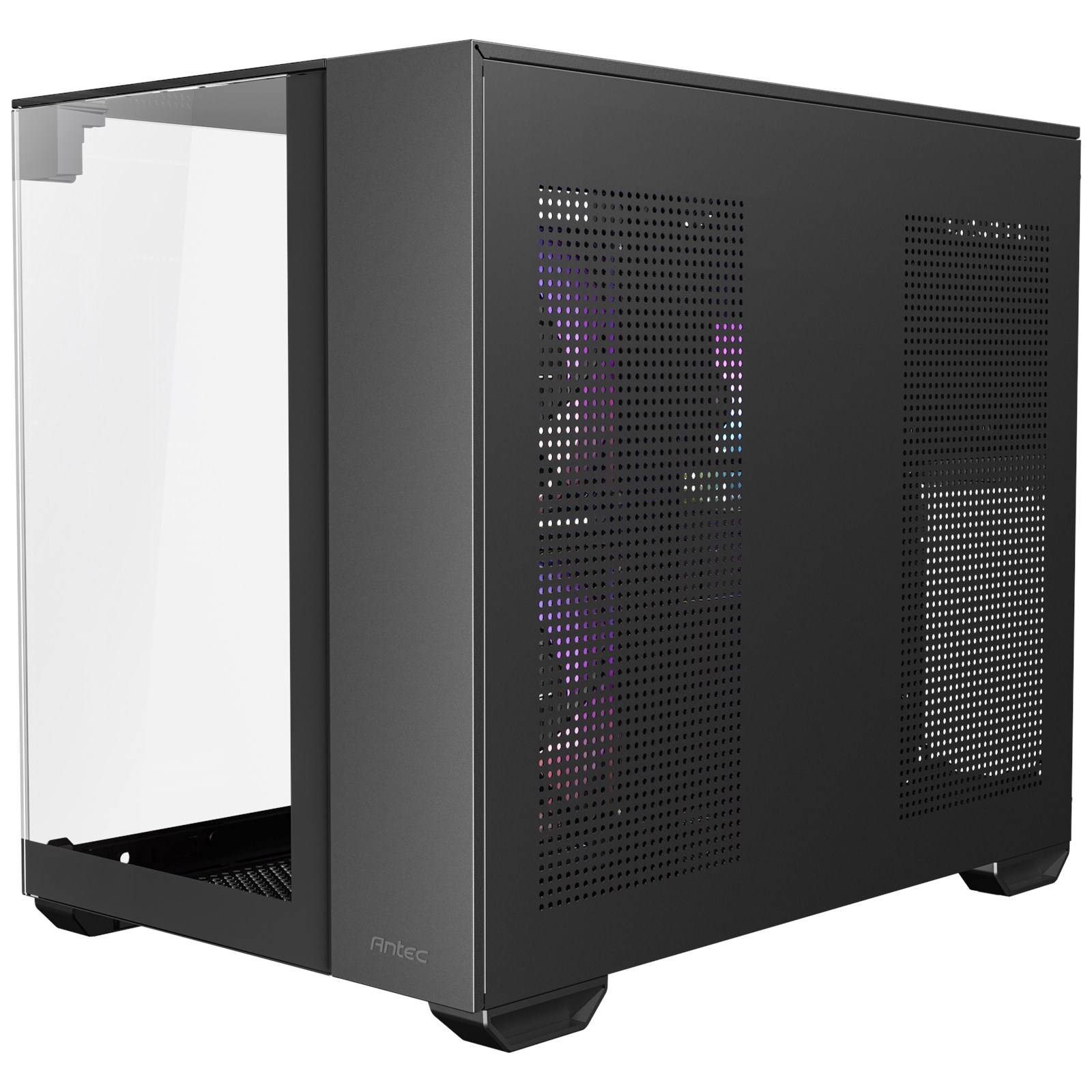 A large amount of air is taken in through the bottom and side, facilitating heat dissipation and protect hardware from overheating. The 1.5mm fine mesh on the right side prevents dust entry.