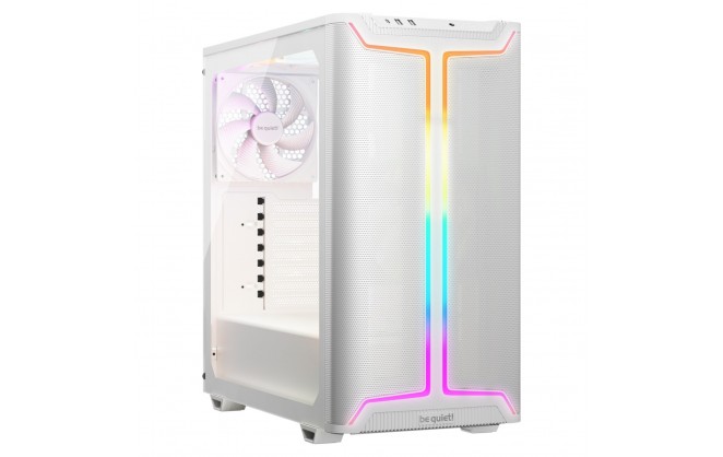 Pure Base 501 DX White features ARGB LEDs on the case’s front and inside the case. That makes the PC case hit the sweet spot between ARGB illumination and elegant understatement the Pure Base 501 case series is known for. The front has been designed from scratch to match the illumination and make a statement in your room.