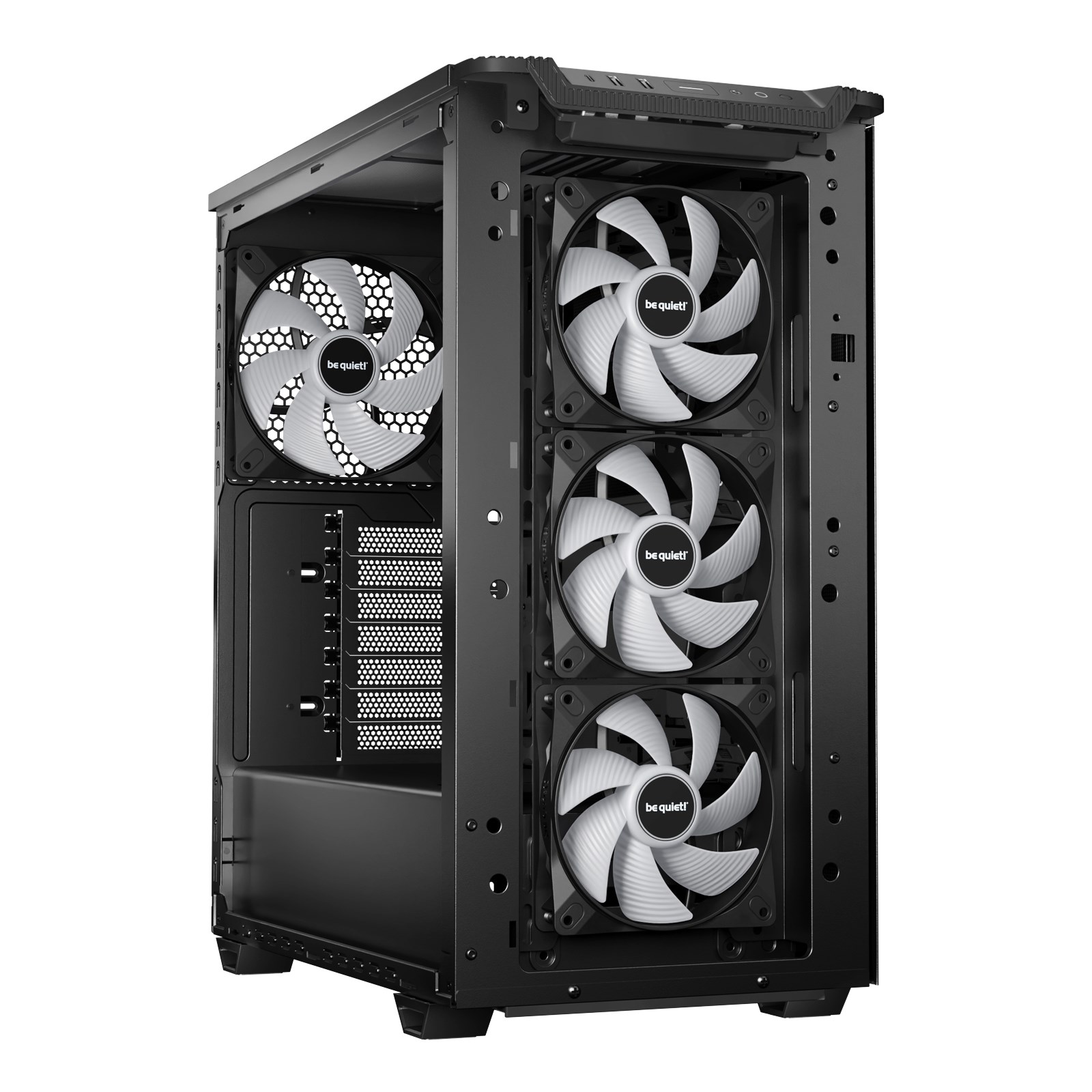 With optimization for maximum airflow, Light Wings LX 120mm PWM is the right choice for any case configuration that demands high cooling performance. Its 7 airflow-optimized fan blades not only reduce noise-generating turbulences but also ensure Light Wings LX PWM provides the performance that is needed, even in demanding configurations. 3 Light Wings LX 120mm PWM pull cool air from the front, while a large 140mm fan exhausts the warm air through the rear.