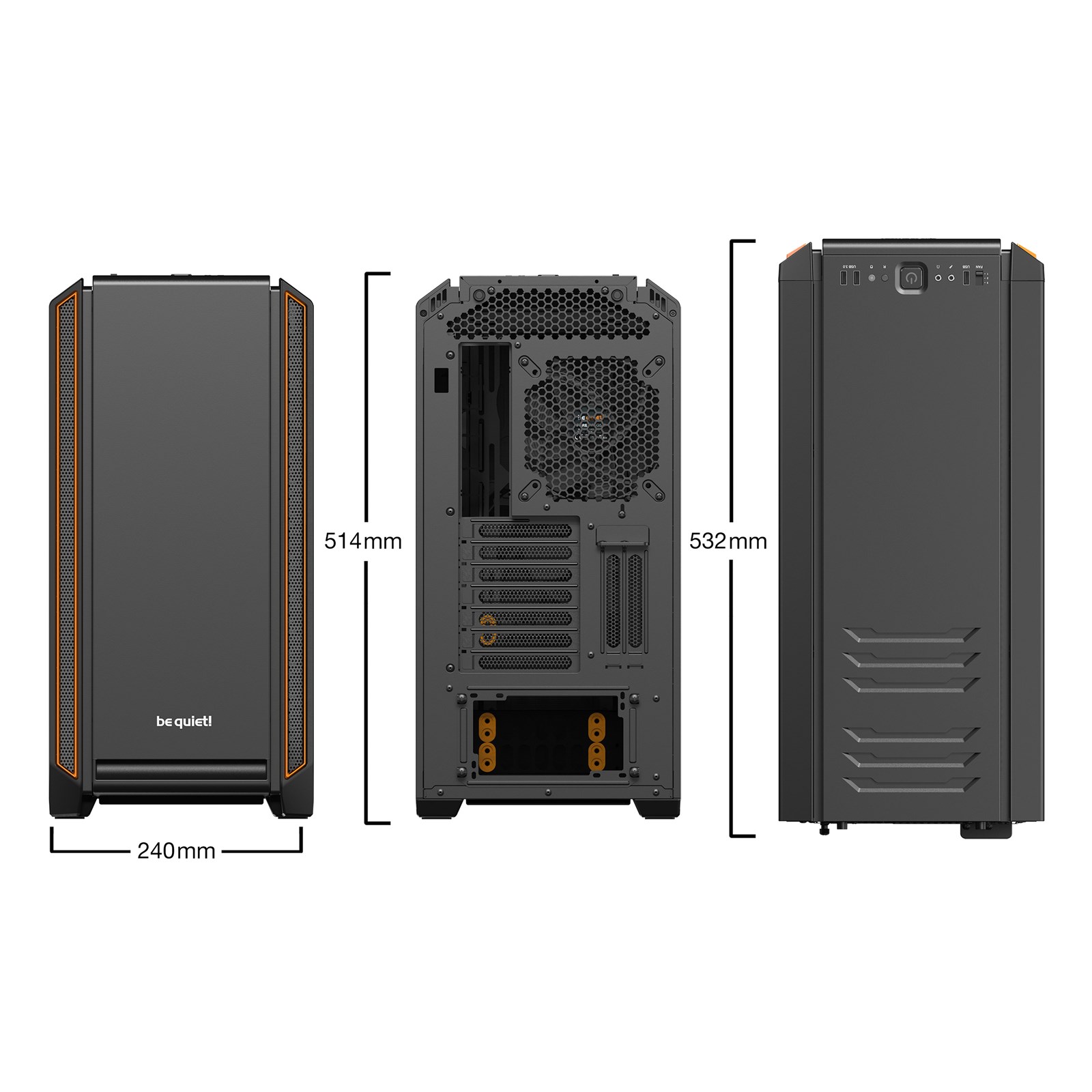 Two pre-installed Pure Wings 2 140mm fans with airflow-optimized fan blades ensure a perfect airflow and solid cooling. The integrated 3-step fan controller caters for up to three fans.