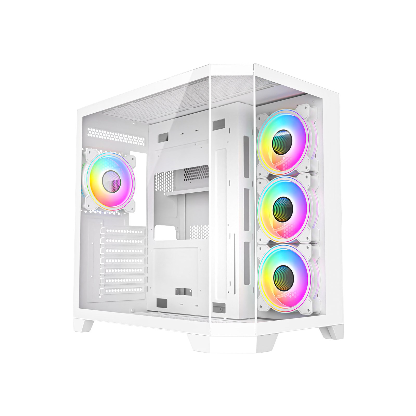 Be ambitious with the CiT DS360, it is perfect for the enthusiast who loves the look of dual-chamber cases but wants to build a large form factor PC. This high-performance ATX chassis boasts three innovative tempered glass panels and features a distinctive eye-catching angled tempered glass panel providing a pleasing aesthetic and offers an uninterrupted view of all your gaming hardware.