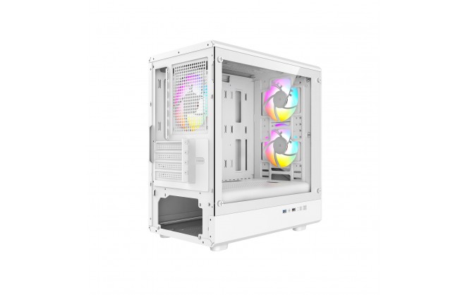 Measuring 40.2 centimetres in height, the interior painted in all white with a full PSU shroud that adds to the sleek and unobtrusive look. Space to install a Micro-ATX or Mini-ITX motherboard and for a small surface area there is still has plenty of space to install powerful hardware. It can fit a graphics card up to 32 centimetres in length and within the PSU shroud users will find space for 1 x 2,5 and 2 x 3,5 drives. Underneath the case is a removable dust filter suitable for an ATX power supply unit measuring up to 180mm will fit inside.