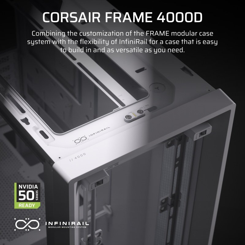 CORSAIR FRAME 4000D Mid Tower ATX Gaming PC Case - White