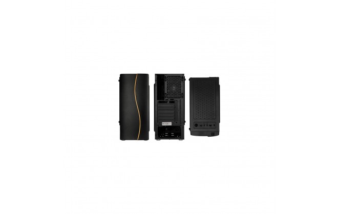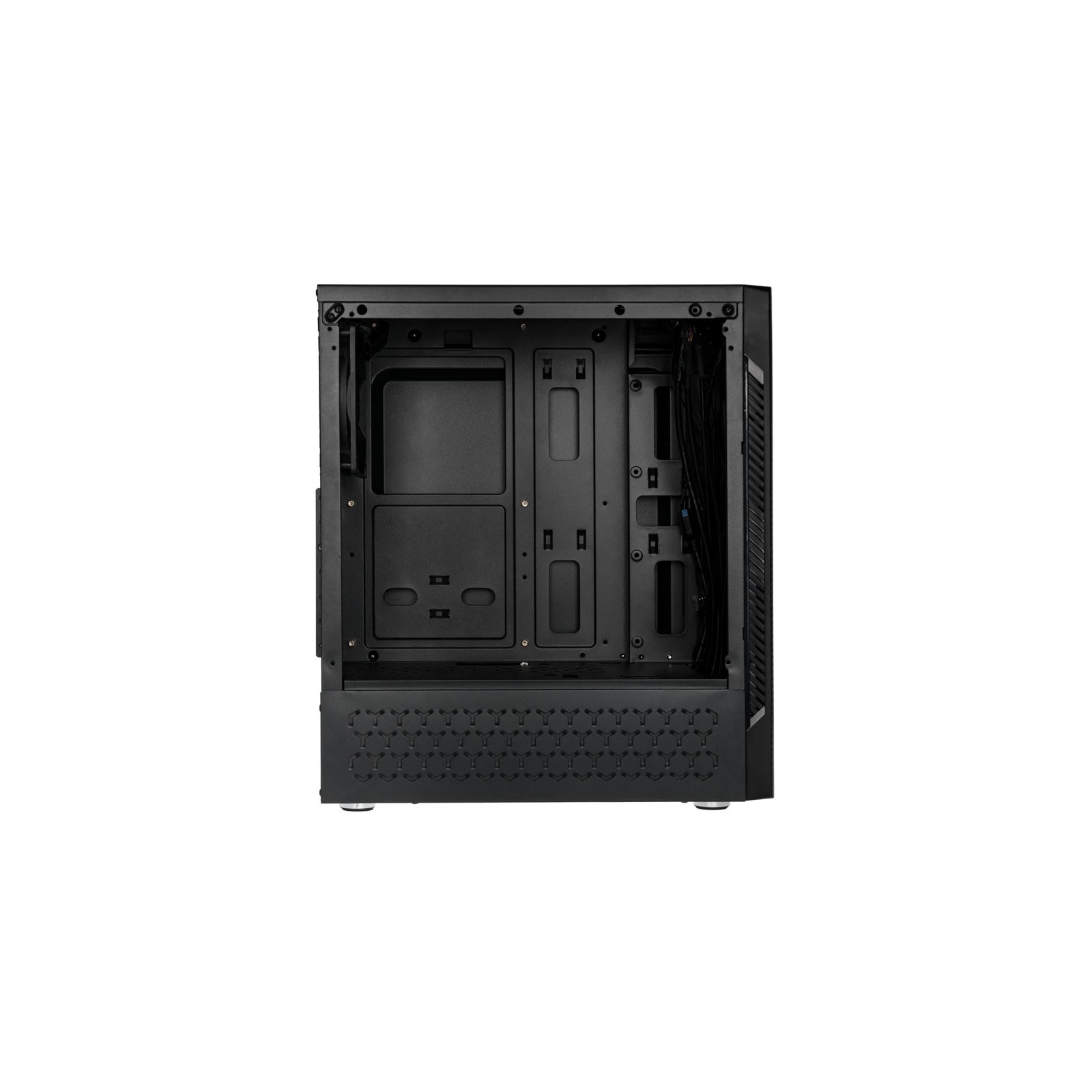 The interior offers space for ATX, Micro-ATX- or a Mini-ITX motherboard of your choosing. Graphics cards can be up to 31I0 mm in length, while CPU coolers enjoy 160 mm of space, more than enough for most current models. When it comes to cable management, the right side cover has a curve to it in order to bring offer additional space. The front allows for three 120 mm fans to be installed. The rear has space for one 120 mm fan. There can also be 2 x 120mm fans installed on the PSU shroud.