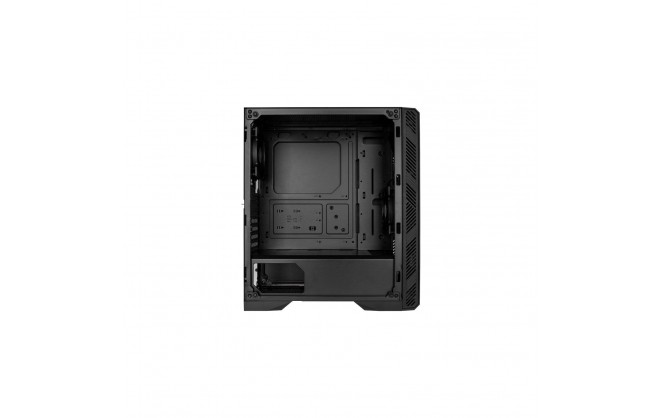 The interior comes entirely in black, with a PSU shroud that only adds to the sleek and unobtrusive look. Behind the shroud is where users will find space for a pair of 3.5″ HDD's in the HDD cage provided. Alternatively, 2.5″ SSD's can be installed here, or next to the motherboard. The motherboard tray and PSU shroud both offer numerous openings for optimum cable management, with up to 34mm cable management space. Underneath the case is a removable dust filter suitable for an ATX PSU up to 190mm.