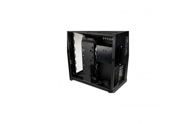 The PC-O11 mounts E-ATX and smaller motherboards, with space for VGA cards as long as 430mm on its eight expansion slots. Its main glass chamber accommodates CPU coolers up to 150mm in height. The rear chamber hides ATX PSUs as long as 430mm and two removable drive cages fitting up to four 3.5¡¨ and two 2.5¡¨ drives or six total 2.5¡¨ drives. You can also opt to mount 2.5¡¨ drives more prominently on the many fan mounts throughout the case ¡V five 80mm mounts on the rear panel, two in the glass chamber and three in the PSU chamber, as well as any of the six 120mm mounts on the top and bottom panels.