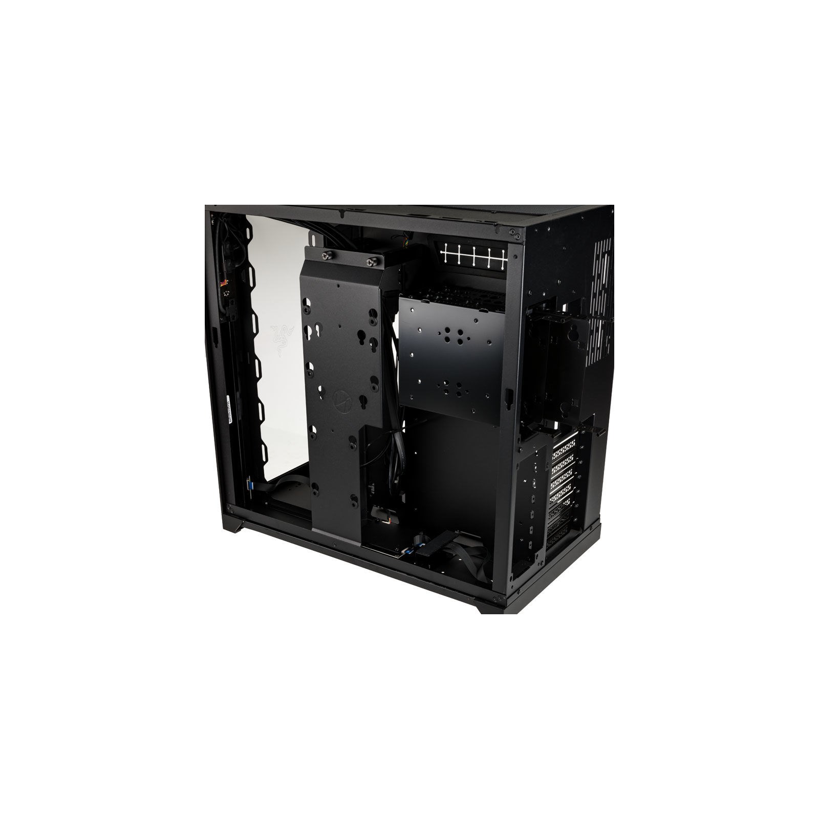 The PC-O11 has up to three 360mm water cooling radiator mounts ¡V you can choose to install three 120mm fans or a 360mm radiator on both the top and bottom panels in the main glass chamber. The PC-O11 also includes a removable bracket to prominently mount three 120mm fans or an additional 360mm radiator behind the front glass panel. You could mount as many as two thick 360mm radiators and a single 240mm radiator without needing to mod the case! The PC-O11 also includes a removable plate for mounting most water cooling pumps and reservoirs.