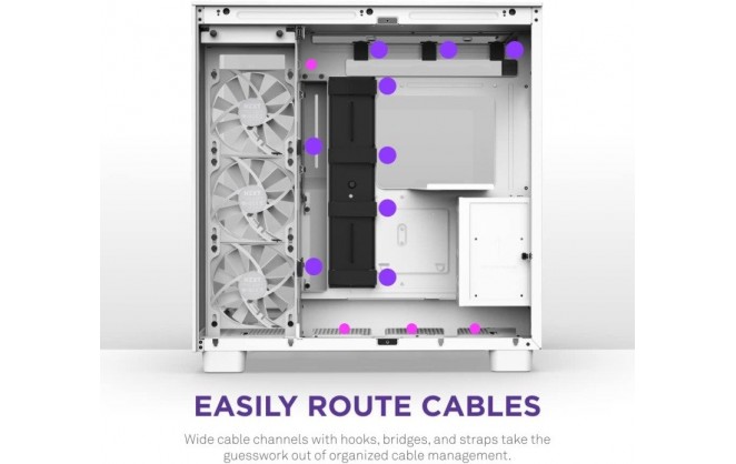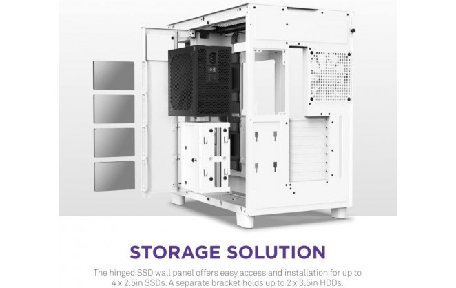 The H9 Series simplifies building a premium PC with plenty of room for powerful components. Featuring wide cable channels, bridges, and velcro straps, installation is a breeze. A dedicated removable SSD wall panel offers plenty of storage space, and built-in hinge magnets make mounting drives easy. Room for up to three sets of 360mm radiators or fans offers maximized cooling, and the removable side brackets allow side-mounting to free up interior space.