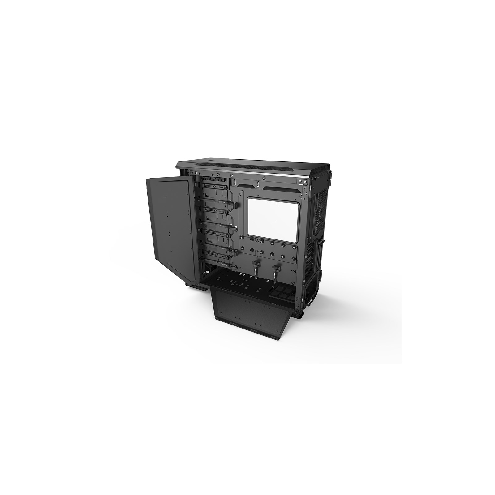 The case features two tempered glass side panels which allows users to display the core build components. The side panels can also be easily attached and removed via an ingenious magnetic hinge system that suspends the panels securely in place. Aluminium handles on both side panels allow you to open them without any unsightly fingerprints. They can even be secured behind the front panel using thumbscrews, which is ideal for LAN events & transporting your system.