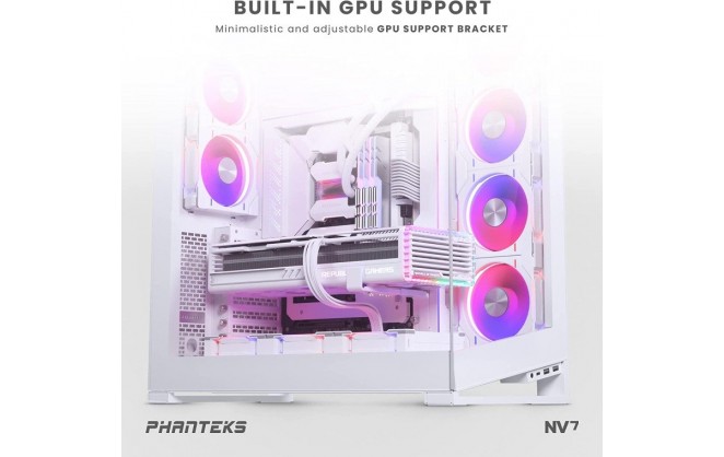 The Phanteks NV7 is an astounding foundation for building a gaming PC, due to its extensive support for a wide range of hardware. Within the motherboard compartment, you can install boards ranging from Mini-ITX to E-ATX. Furthermore, thanks to a GPU clearance of 450mm and 8 PCIe slots, you'll be able to install even the latest GPUs such as the powerful NVIDIA 4090. What's more, the Phanteks NV7 can accommodate high wattage power supplies, thanks to its 255mm of clearance within the PSU chamber.