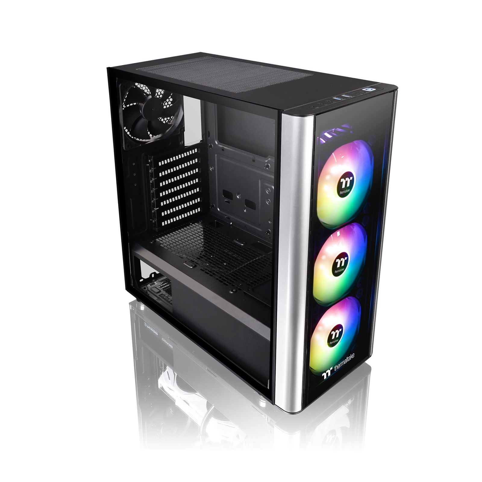The Level 20 MT ARGB comes preinstalled with three 120mm 5V ARGB LED front fans and one 120mm rear fan. The front fans are addressable to deliver 16.8 million-color RGB illumination and unparalleled ventilation. This model comes ready to sync with RGB capable motherboards from Asus, Gigabyte, MSI and AsRock.