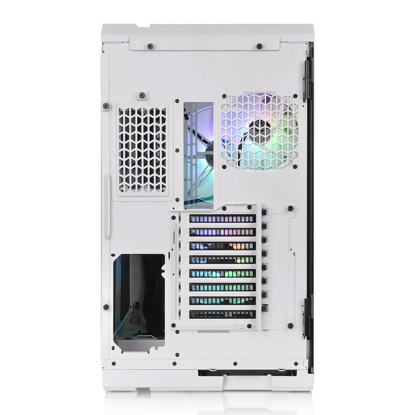 Specially designed with dual GPU placement options, the View 51 TG Snow ARGB has support for both vertical and horizontal graphics card layouts. With dual PCI-E slot designs (and an optional PCI-e riser cable), the included riser GPU support bracket will not only prevent the graphics card from sagging, but also help reduce the overall weight on the motherboard.