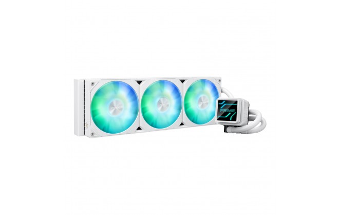 Combining cooling performance, easy installation, and aesthetics all in one. The Prime LC 360 ARGB White Edition features a specially designed CPU contact area that can effectively cool the CPU and provide stable performance. At the same time, it comes with pre-installed ARGB fans that optimize the user's PC DIY experience. A single cable connects the lighting and fans, making cable management much easier. The customizable infinity mirror lenses in the water block give the PC build more versatility, empowering you to create diverse styles.