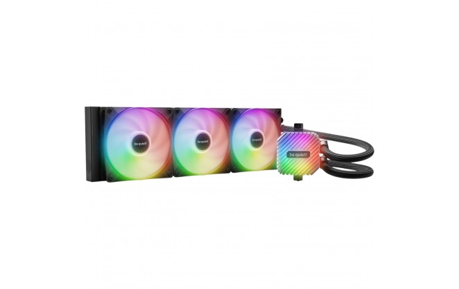 Light Loop 360mm Black complements all-black systems best, thanks to its uniform black aesthetics. The integrated ARGB LED lighting within the cooling block and fans allows the vibrant lighting to take center stage.