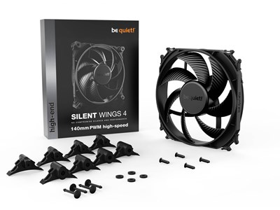 Be it as a radiator fan or in the case: Silent Wings 4 140mm PWM high-speed always makes a good impression. The all-black design combined with the high-grade fan sticker makes the fan shine in any system. This makes Silent Wings 4 140mm PWM high-speed a high performant and an incredibly good-looking fan.