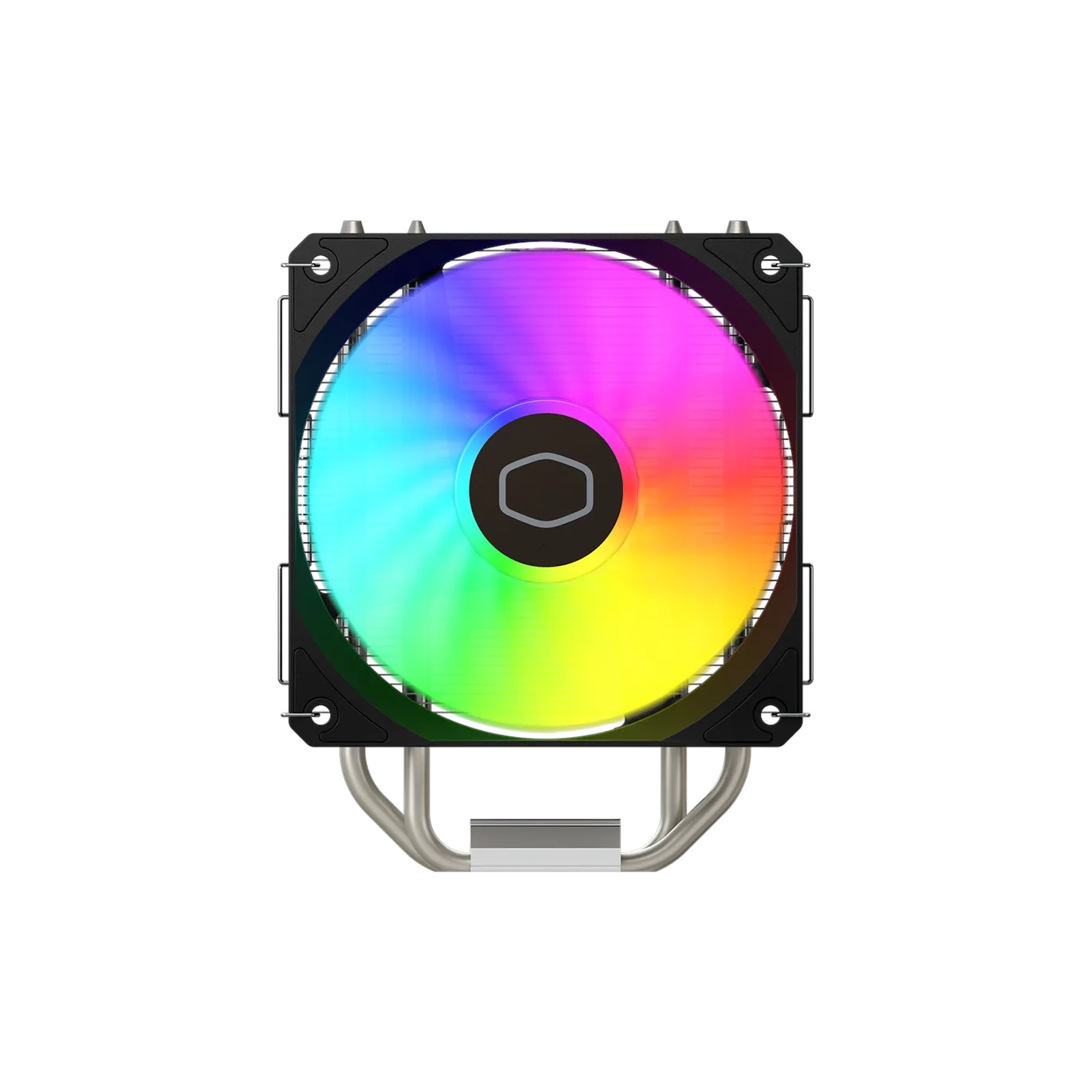 The Cooler Master Hyper 212 Spectrum V3 is a powerful and reliable CPU air cooler designed to keep your computer running smoothly and at safe temperatures. It uses four heat pipes that make direct contact with your processor, quickly pulling heat away so your system can stay cool during gaming, streaming, or everyday use. The cooler also comes with a 120mm fan that moves a lot of air while staying quiet, so you get strong cooling performance without a lot of extra noise.