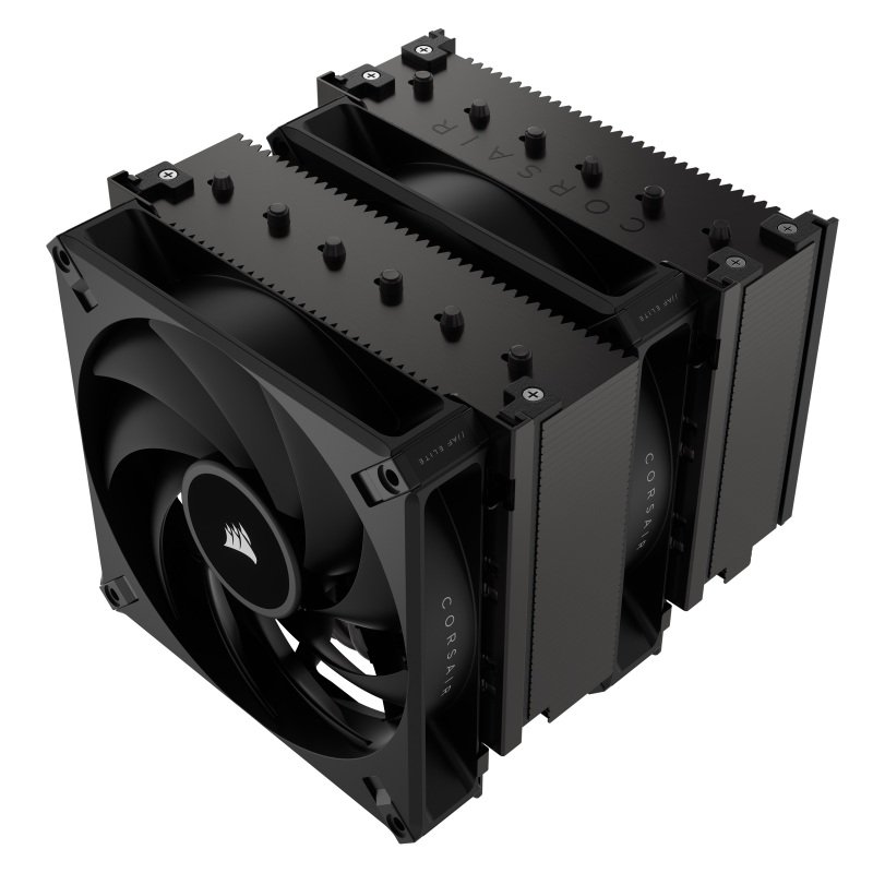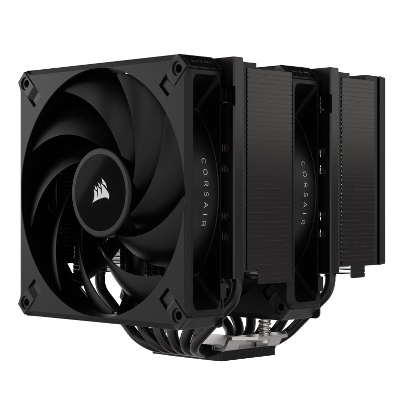 Confidently cool the most demanding CPUs with the CORSAIR A115 High-Performance Tower CPU Air Cooler, featuring a performance-engineered copper cold plate and 6x 6mm heat pipes for high-efficiency thermal transfer. Two CORSAIR AF140 ELITE PWM fans boast CORSAIR AirGuide technology for concentrated airflow, and durable fluid dynamic bearings for quiet operation at speeds up to 1,600 RPM. Slim slide-and-lock fan mounts enable variable mounting heights to accommodate most DRAM modules, while the CORSAIR HoldFast 2.0 retention system ensures a secure fit for LGA 1700 and AM5, in addition to previous generation Intel® and AMD® motherboard sockets. Topped with pre-applied premium CORSAIR XTM70 thermal paste to maximize heat transfer, and backed by a five-year warranty, the A115 cooler delivers reliable cooling for your high-end processor.