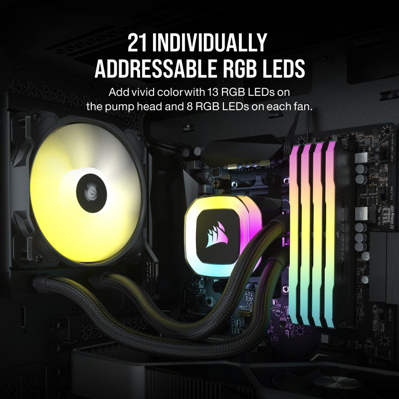 Tap into the iCUE Software Ecosystem: CORSAIR iCUE software lets you control and sync your cooler's RGB lighting with select iCUE compatible devices (requires a CORSAIR iCUE RGB controller, sold separately).