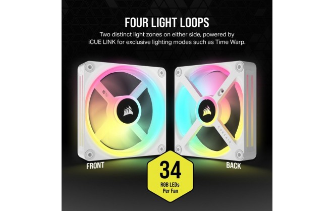 Exclusive Time Warp Lighting Mode: Equipped with 34 RGB LEDs, spread across two distinct light zones on either side, and powered by iCUE LINK for exclusive lighting modes such as the strobing Time Warp (requires iCUE LINK System Hub, sold separately).