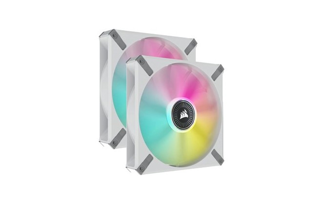 Corsair iCUE ML140 RGB ELITE Premium 140mm PWM Magnetic Levitation Dual Fan Kit in White with iCUE Lighting Node CORE