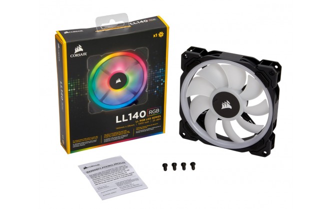 The CORSAIR LL140 RGB PWM fan combines excellent airflow, low-noise operation and 16 brilliant independent RGB LEDs, spread between two separate light loops that encircle the fan and its hub. Pair with an existing LL140 RGB kit or CORSAIR Lighting Node PRO (sold separately) to customize lighting with a wide array of vivid effects and patterns. Using an optimized 140mm fan blade and PWM control, set the speed of the fan anywhere from 600 RPM to 1,300 RPM for precise noise and airflow adjustment. Made for those seeking excellent airflow, quiet operation, and powerful lighting, the CORSAIR LL140 RGB fan puts your PC back in the loop.