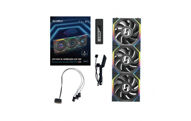 Lian Li UNI FAN SL Wireless LCD 120mm Triple Pack of Fans Black