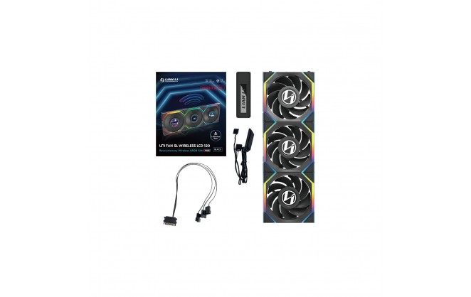 Lian Li UNI FAN SL Wireless Reverse Blade 120mm ARGB LCD Triple Pack Fans Black