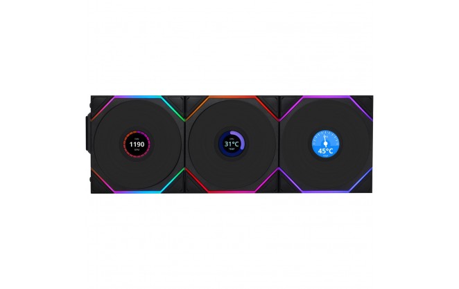 Lian Li UNI FAN TL LCD Wireless Reverse 120mm Triple Pack Fans Black with controller