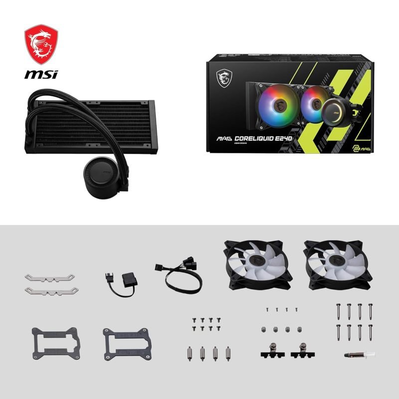 - The MAG CORELIQUID E Series AIO CPU liquid coolers are inspired by a solar eclipse, presented with Mystic Light ARGB lighting. This innovative product combines advanced cooling technology with a striking visual design.