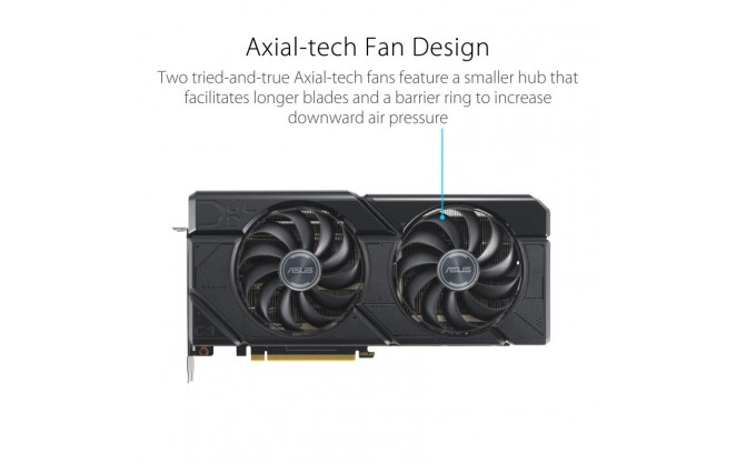- Axial-tech Fan Design features a smaller fan hub that facilitates longer blades and a barrier ring that increases downward air pressure.