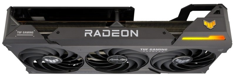 The heat spreader draws heat up into heatpipes that carry it through a fin stack that fills most of the card's large, 2.96-slot footprint.