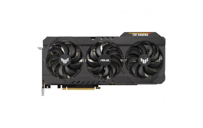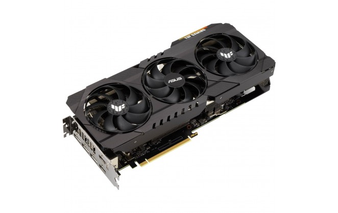 The heat spreader draws heat up into heatpipes that carry it through a fin stack that fills most of the card's large, 2.7-slot footprint. This generation of TUF Gaming graphics cards also feature a dedicated heatsink for VRAM to keep temperatures well under maximum operating specs.