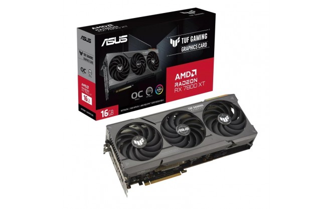 ASUS TUF Gaming Radeon™ RX 7800 XT OC Edition 16GB GDDR6 optimized inside and out for lower temps and durability.