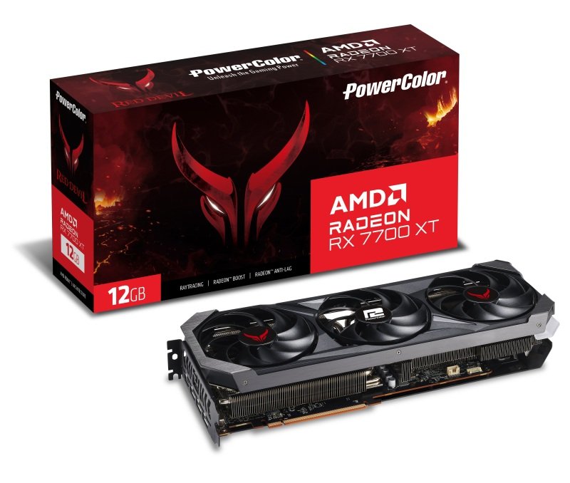 PowerColor Red Dragon RX 7700 XT features the same new cooling-fan design as PowerColor Red Devil RX 7700XT with 2X 100mm and 1X 90mm triple fans to enhance the airflow and air pressure for keeping the card in the best cooling condition. Besides, Red Dragon RX 7700 XT equips Dual BIOS, stylish back plate, and shiny LED light. You will have upgraded gaming experiences with the new Red Dragon RX 7700 XT.