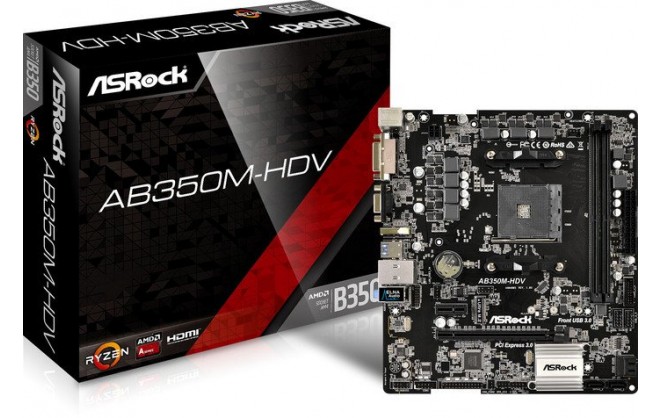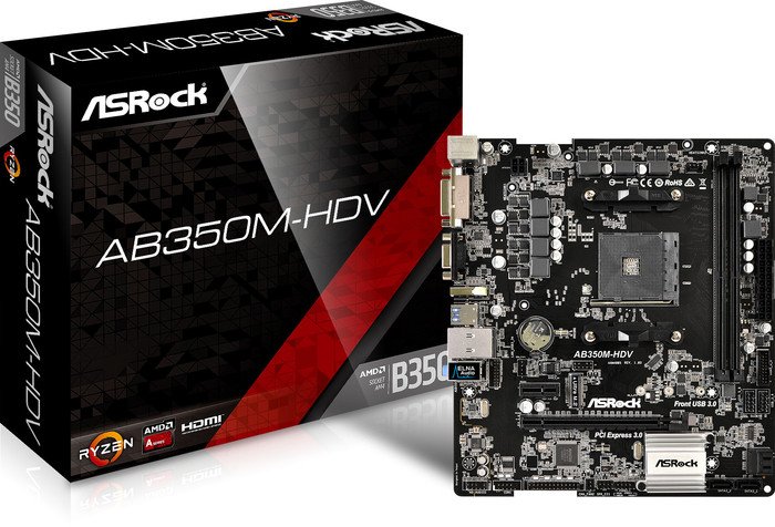 ASRock AB350M-HDV AMD B350 AM4 DDR4 SATA3 M.2 (PCIe/SATA) Realtek LAN USB 3.0 MicroATX Retail Motherboard