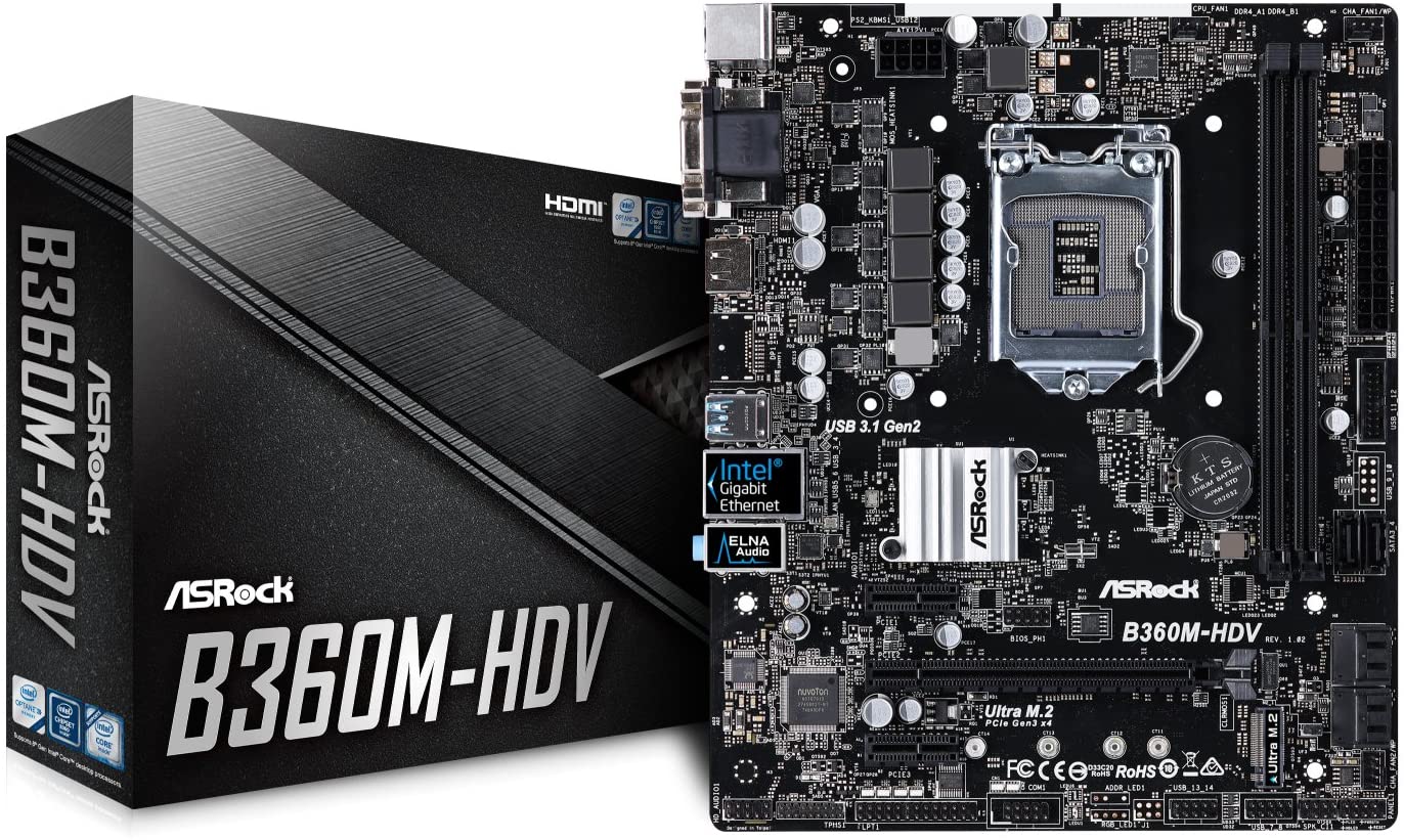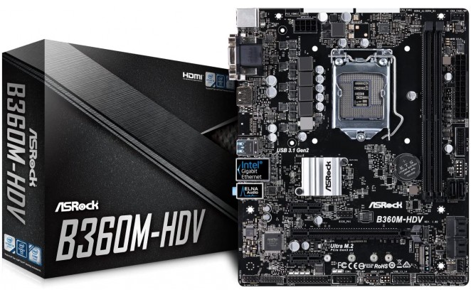 AsRock B360M-HDV LGA 1151 DDR4 micro ATX M.2 USB 3.1 HDMI DVI VGA Motherboard