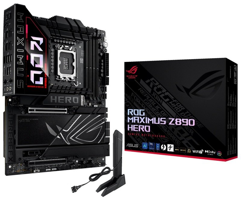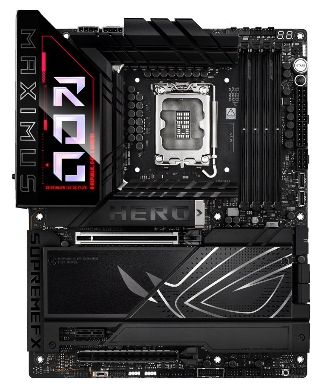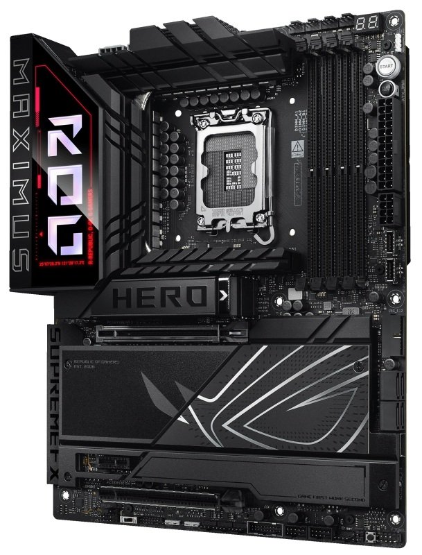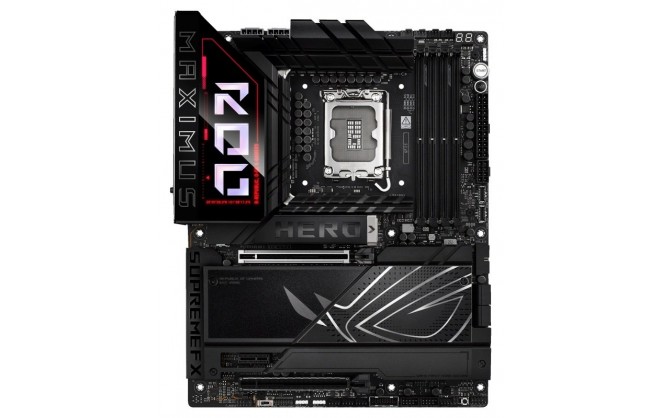 The ROG Maximus Z890 Hero unleashes the performance of Intel® Core™ Ultra processors (Series 2) via exclusive AI PC technologies, robust power delivery, optimized thermal management, extensive PCIe® 5.0 support, DDR5 slots and WiFi 7. Meanwhile, angular design elements and Polymo II Lighting accents around the ROG logo deliver a signature aesthetic that elevates system design.