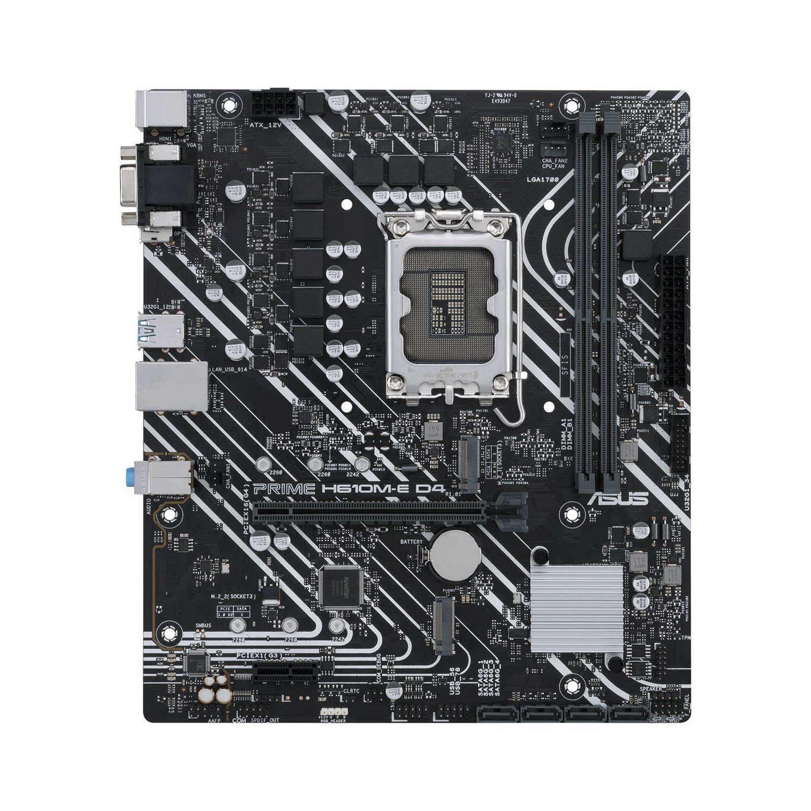 PRIME H610M-E D4 offers two M.2 slots that support data-transfer speeds of up to 32 Gbps via PCIe 3.0, enabling quicker boot-up and app load times with OS or application drives.