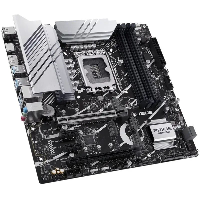 ASUS Prime series motherboards are expertly engineered to unleash the full potential of 13th Gen Intel® Core™ Processors. Boasting a robust power design, comprehensive cooling solutions and intelligent tuning options, PRIME Z790M-PLUS provides users and PC DIY builders with a range of performance optimizations via intuitive software and firmware features.FLEXIBILITYComprehensive controls form the foundation of the ASUS PRIME series. The PRIME Z790M-PLUS motherboard packs flexible tools to tune every aspect of your system, enabling performance tweaks to perfectly match the way you work to maximize productivity.Intelligent ControlASUS Intelligent Control makes your PC smart. Along with taking care of complex tuning and dynamically optimizing essential aspects of your system, it offers intelligently simplified options for newcomers to PC DIY, as well as more comprehensive features for seasoned veterans.All-Around Energy EfficiencyThe Power Saving function contains several settings can easily optimize power consumption and maximize energy savings. You can enable a CPU power limit, darken Aura lighting, and set the fan profile to a power saving mode. You can also toggle the Power Saver plan that is built into Microsoft Windows.Flexible Air- and Liquid-Cooling ControlsASUS Fan Xpert 4 software provides comprehensive control over fans, water pumps and all-in-one (AIO) coolers. Whether cooling with air or water, an Auto-Tuning mode intelligently configures all parameters with a single click. There's also an Extreme Quiet mode that reduces all fan speeds to below the default minimum to keep your system whisper-quiet when performing light tasks. Fans, water pumps and AIO coolers can also be controlled via the UEFI BIOS.Precise Digital Power ControlThe Digi+ voltage-regulator module (VRM) delivers real-time control over voltage droop, automatically switching frequency and power-efficiency settings. It also allows you to fine-tune your CPU for ultimate stability and performance.AI Cooling llAI Cooling II balances the thermals and acoustics of any build with a single click. A proprietary ASUS algorithm slashes unnecessary noise while running a quick stress test, and then it monitors CPU temperatures to dynamically adjust fans to optimal speeds.Advanced Tuning for Serious TweakersAn intuitive Advanced mode offered via the UEFI lets you take complete control. A built-in search feature makes it easy to find options, and various advanced functions let you intelligently make nuanced adjustments so you can dial in performance just the way you want.Search FunctionQuickly and easily find the option or setting you need.ASUS User ProfilePort configuration settings between different BIOS versions or share them with friends.COOLINGPRIME Z790M-PLUS motherboard is engineered with multiple onboard heatsinks and an array of hybrid fan headers to ensure your rig stays cool and stable under intense workloads.VRM Heatsinks and Thermal PadsThe extensive surface area of the massive heatsinks cover the VRMs and chokes to improve heat dissipation. Together with specially engineered thermal pads, they improve heat transfer from the MOSFETs and chokes for better cooling performance.Cooler by DesignPRIME Z790M-PLUS features comprehensive cooling controls that are configurable via Fan Xpert 4 software or via the UEFI BIOS.Multiple Temperature SourcesEach header can dynamically reference three thermal sensors. Fan Xpert 4 allows you to map the temperature of supported ASUS graphics cards to optimize cooling for GPU- and CPU-intensive tasks.AIO Pump HeaderA dedicated PWM/DC header for self-contained water-cooling setups.Smart ProtectionA dedicated integrated circuit protects each fan header from overheating and overcurrent4-Pin PWM/DC FanEach onboard header supports auto-detection of PWM or DC fansPERFORMANCEThe PRIME Z790M-PLUS motherboard is built to handle the high core counts and bandwidth demands of 13th Gen Intel® Core™ Processors. ASUS Z790 motherboard provides all the fundamentals to boost daily productivity, so your system will be ready for action with stable power, intuitive cooling and flexible data transfer options.Robust Power DesignStable power is essential to extract every last bit of performance out of Intel processors. The PRIME Z790M-PLUS is geared to cater to the demands of these high-core-count CPUs.AEMP II for Ultimate DDR5 PerformanceASUS Enhanced Memory Profile II (AEMP II) is an exclusive firmware feature for PMIC-restricted memory modules. AEMP II is based on a CPU and memory module's ability to train the memory chips on your kit, and it presents an optimized clock speed that can effortlessly unleash performance. Built through a flexible training method, AEMP II makes it easy to not only tune the memory above baseline settings but also maintain the stability of system operation, whether getting the most out of an entry-level module or priming a high-speed kit for ultimate performance.ASUS OptiMem IIRevisions to the motherboard's trace routing provide the latest Intel® processors with unrestricted access to memory bandwidth. ASUS OptiMem II technology carefully maps memory signal pathways across different PCB layers to reduce vias and adds shielding zones that significantly reduce crosstalk. Benefits of ASUS OptiMem II: Improved memory stability and compatibility Allows lower memory latencies at equivalent voltages Improved memory frequency marginOutstanding Audio Combined onboard features deliver elevated audioIntelligent design and premium hardware create audio quality unlike anything you've ever experienced. Audio Shielding Audio shielding ensures precision analog/digital separation and greatly reduced multi-lateral interference. Dedicated Audio PCB Layers Separate layers for left and right tracks ensures both channels deliver consistent, equal quality. Premium Audio Capacitors Provides warm, natural, and immersive sound with exceptional clarity and fidelity.Aura Sync Outshine the CompetitionA w