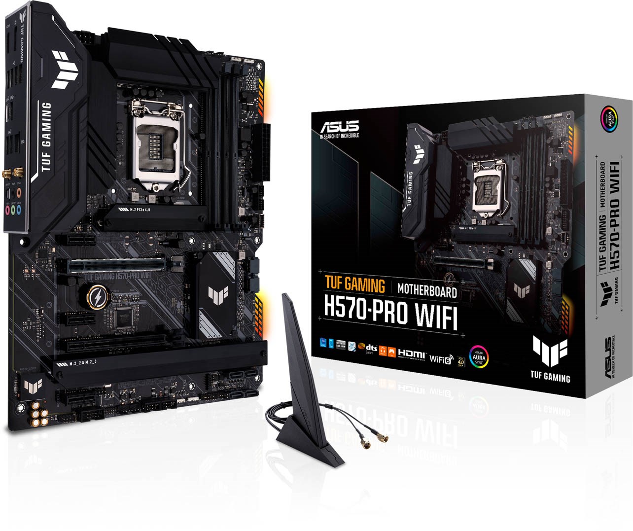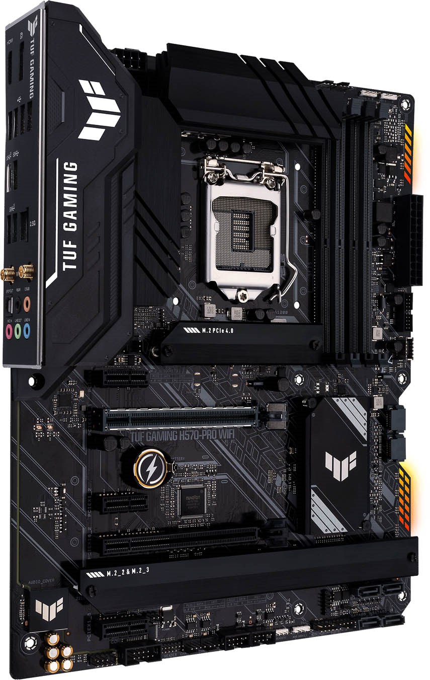 ASUS TUF GAMING H570-PRO WIFI takes all the essential elements of the latest Intel® processors and combines them with game-ready features and proven durability. Engineered with military-grade components, an upgraded power solution and a comprehensive cooling system, this motherboard offers rock-solid, stable performance for marathon gaming. Aesthetically, TUF GAMING H570-PRO WIFI sports the new TUF Gaming logo, and incorporates simple geometric design elements to reflect the dependability and stability that defines the TUF Gaming series.