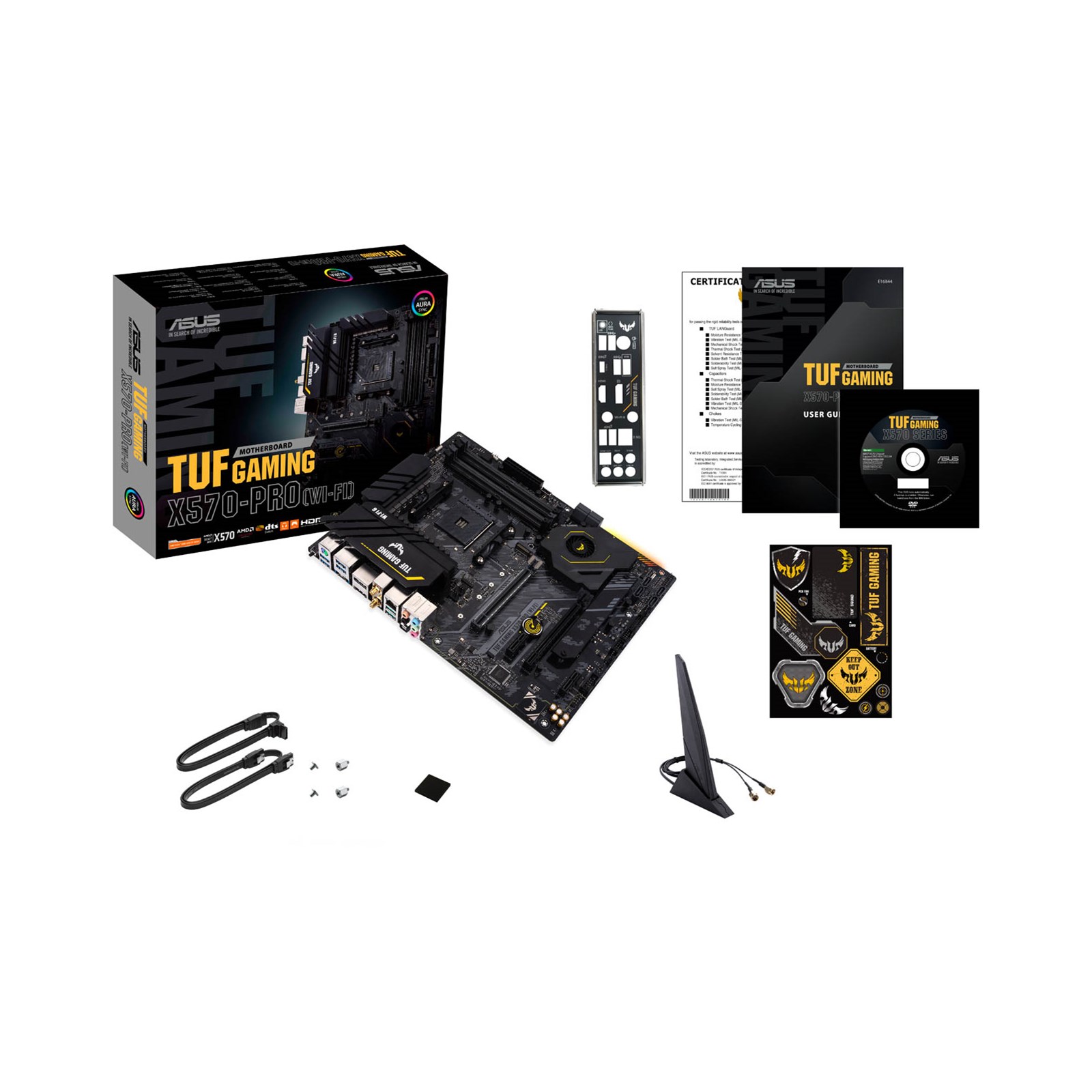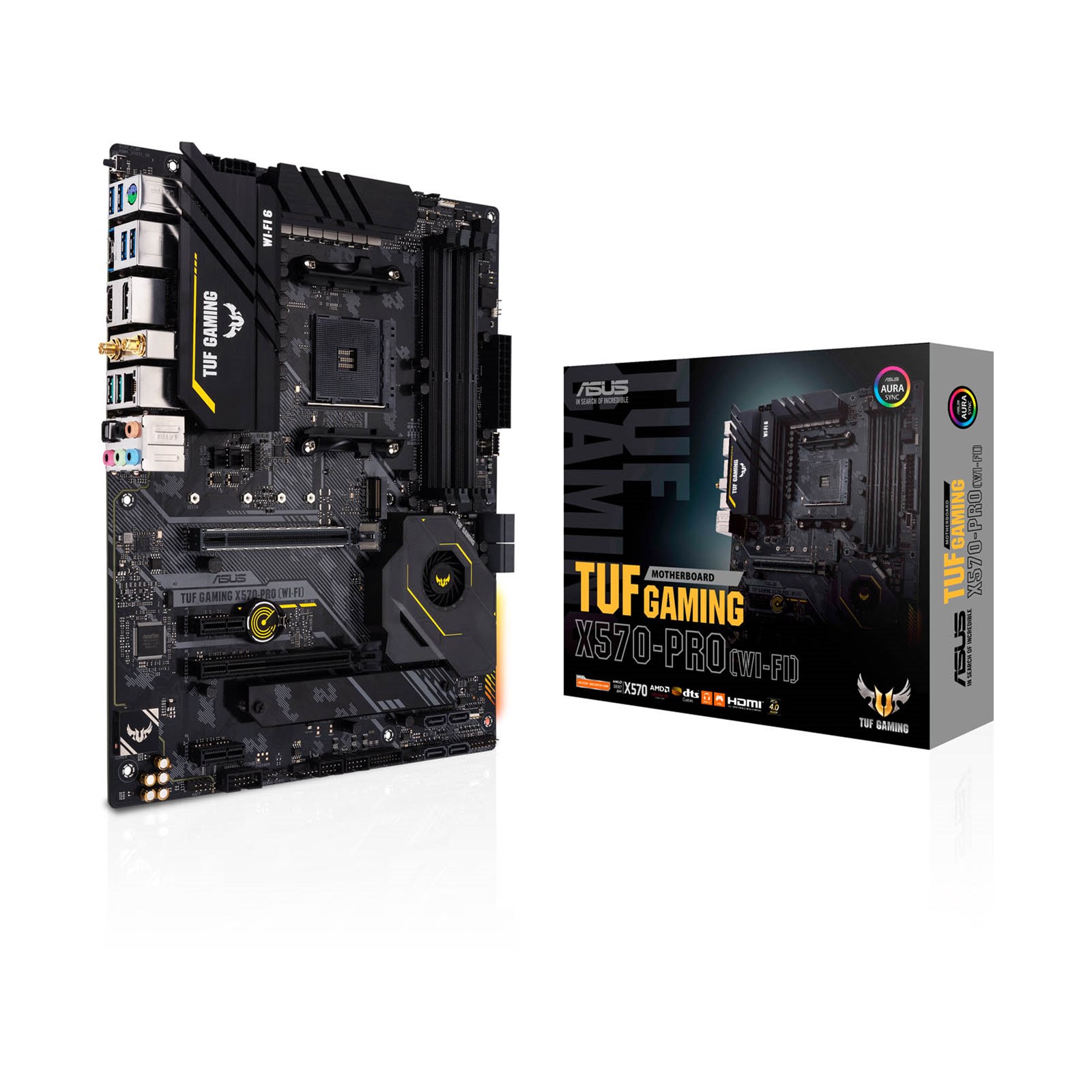 TUF Gaming X570-Pro (Wi-Fi) distills the essential elements of the latest AMD platform and combines them with game-ready features and proven durability. Engineered with military-grade components, upgraded power solutions and a comprehensive set of cooling options, these motherboards deliver rock-solid performance with unwavering gaming stability.