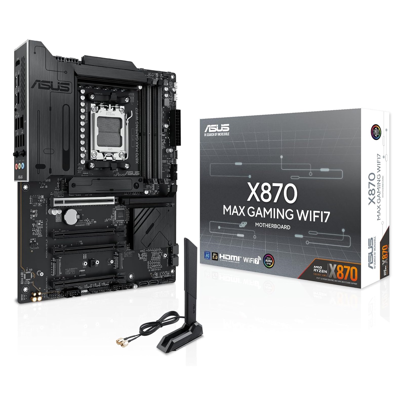 ASUS X870 series motherboards are expertly engineered to unleash the full potential of AMD Ryzen™ 9000 series processors. Boasting a robust power design, comprehensive cooling solutions and intelligent tuning options, the X870 MAX GAMING WIFI7 motherboard provides users and PC DIY builders with a range of performance optimizations via intuitive software and firmware features. It’s designed to be Advanced AI PC-ready, offering the power and connectivity needed for demanding AI applications.