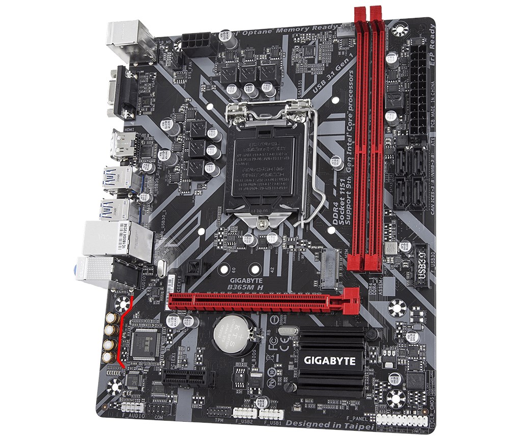 GIGABYTE motherboards feature an audio noise guard that essentially separates the board's sensitive analog audio components from potential noise pollution at the PCB level. LED trace path lighting Illuminates to show the separation of the PCB layers.