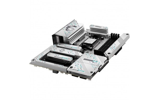 The B850 GAMING PLUS WIFI PZ moves the power connectors, fan connectors, and other pin headers to the back of the motherboard. This provides a cleaner and neater front view, allowing the motherboard, liquid cooler, and graphics card's aesthetic design to be fully displayed.