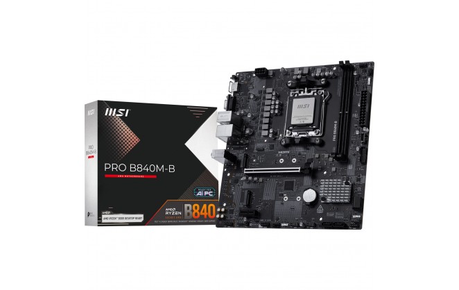The PRO B840M-B is a business-oriented mATX motherboard constructed around the latest AMD B840 chipset which supports AMD Ryzen 9000 / 8000 / 7000 series desktop processors, featuring PCIe 4.0, 2.5G LAN, DDR5 and Frozr design that delivers the capacity to support a broad spectrum of both cutting-edge and innovative hardware.