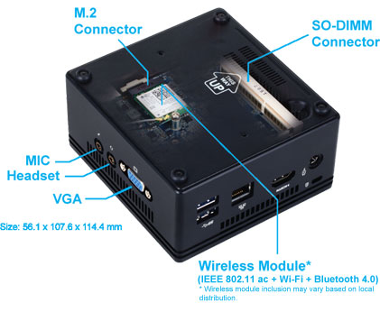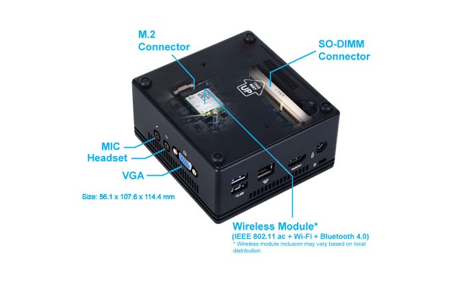 Gigabyte BRIX GB-BACE-3160 Barebone PC with Integrated Intel Celeron J3160 CPU TC