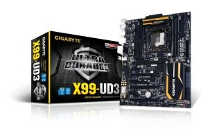 Gigabyte GA-X99-UD3 Socket LGA 2011-V3 DDR4 SATA PCI-E 7.1 channel Audio ATX Retail Motherboard CPU Support for Intel Core i7 processors in the LGA2011-3 package L3 cache varies with CPU (Please refer "CPU Support List" for more information.) Chipset Intel X99 Express Chipset Memory 4 x DDR4 DIMM sockets supporting up to 32 GB of system memory * Due to a Windows 32-bit operating system limitation, when more than 4 GB of physical memory is installed, the actual memory size displayed will be less than the size of the physical memory installed. 4 channel memory architecture Support for DDR4 2133/1866/1600/1333 MHz memory modules Support for non-ECC memory modules Support for Extreme Memory Profile (XMP) memory modules Support for RDIMM 1Rx8 memory modules (operate in non-ECC mode) (Please refer "Memory Support List" for more information.) Audio Realtek ALC1150 codec High Definition Audio 2/4/5.1/7.1-channel Support for S/PDIF Out LAN Intel GbE LAN chips (10/1