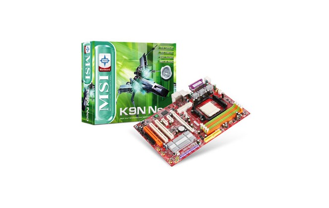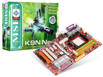 Microstar MSI AM2 K9N NEO-F, NF550, Socket AM2, PCI-E (x16), DDR2 800, SATA II, SATA RAID, GIGA LAN ATX socket 940 Motherboard CPU 64bit Athlon 64/X2/FX AM2 Processors. Chipset nVidia MCP550. Memory 4x DDRII 533/667/800 SDRAM (8GB Max) Dual Ch. LAN Gigabit Lan Audio 8 Channel Realtek AL883 SATA 4x SATA II, RAID 0/1/0+1 JBOD Backpanel 1x PS2 Mouse 1x PS2 Keyboard 1x Com Port 1x Parallel Port 4x USB2.0 Ports 1x Gb LAN 6x Audio Expansion 1x PCI-E x16 2x PCI-E x1 3x PCI SLots (1x Orange for MSI Special Function Card) Form Factor ATX (30.5cm x 20cm)