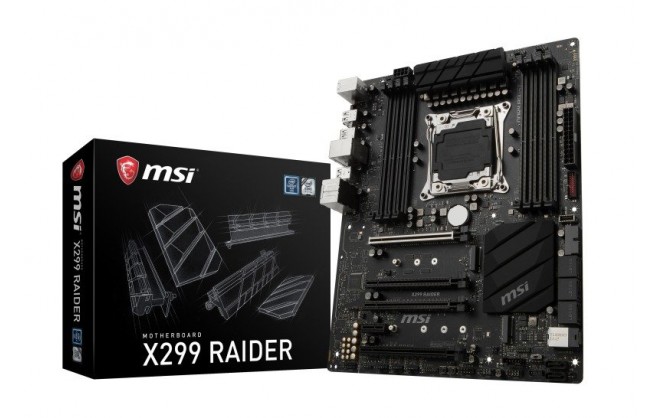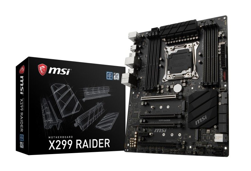 MSI Intel X299 RAIDER Core-X Extreme ATX Motherboard Retail Specifications CPU ? Supports Intel? Core? X-Series Processor Family for LGA2066 Socket * This function will be supported depend on the CPU. Chipset ? Intel? X299 Chipset Main Memory ? 8 x DDR4 memory slots, support up to 128GB ? Quad channel memory architecture with the CPU that supports up to 4-channels DDR4** - X-series processor support DDR4 4133+(OC)/4000(OC)/3866(OC)/3800(OC)/3733(OC)/3600(OC)/3466(OC)/3400(OC)/3333(OC)/3200(OC)/3000(OC)/2933(OC)/2800(OC)/2667/2400/2133 MHz* ? Dual channel memory architecture with the CPU that supports up to 2-channels DDR4** - X-series processor support DDR4 4500+(OC)/4400(OC)/4333(OC)/4266(OC)/4200(OC)/4133(OC)/4000(OC)/3866(OC)/3800(OC)/3733(OC)/3600(OC)/3466(OC)/3400(OC)/3333(OC)/3200(OC)/3000(OC)/2933(OC)/2800(OC)/2667/2400/2133 MHz* ? Supports Intel? Extreme Memory Profile (XMP) * For the latest information about memory, please visit http://www.ms